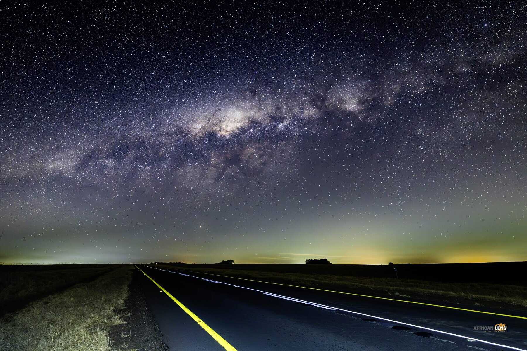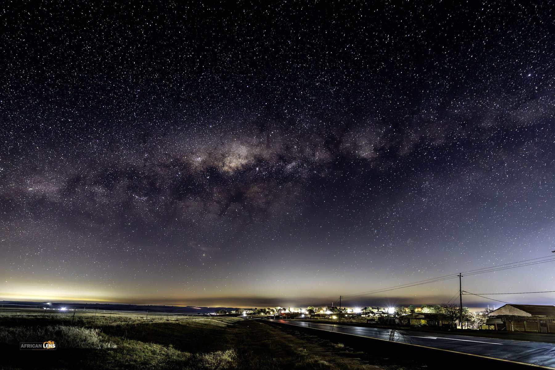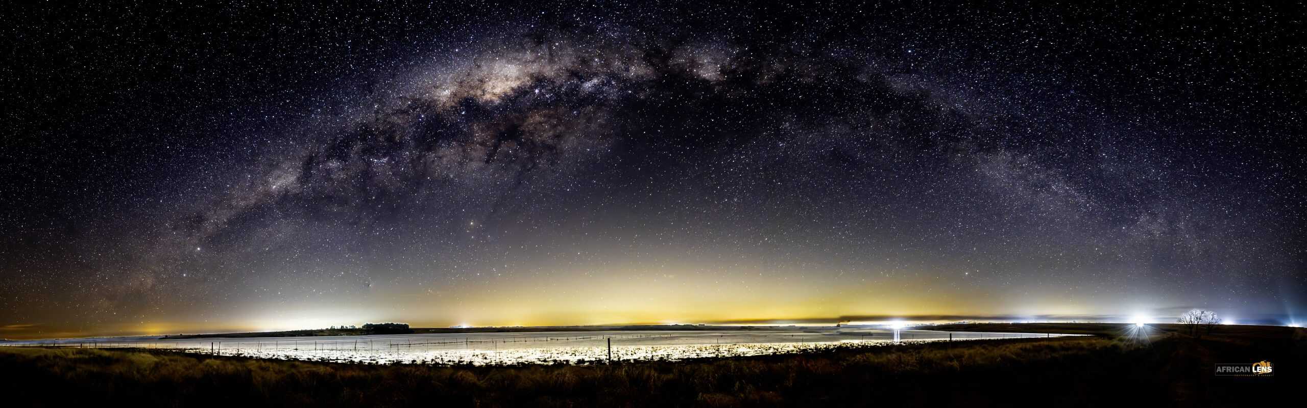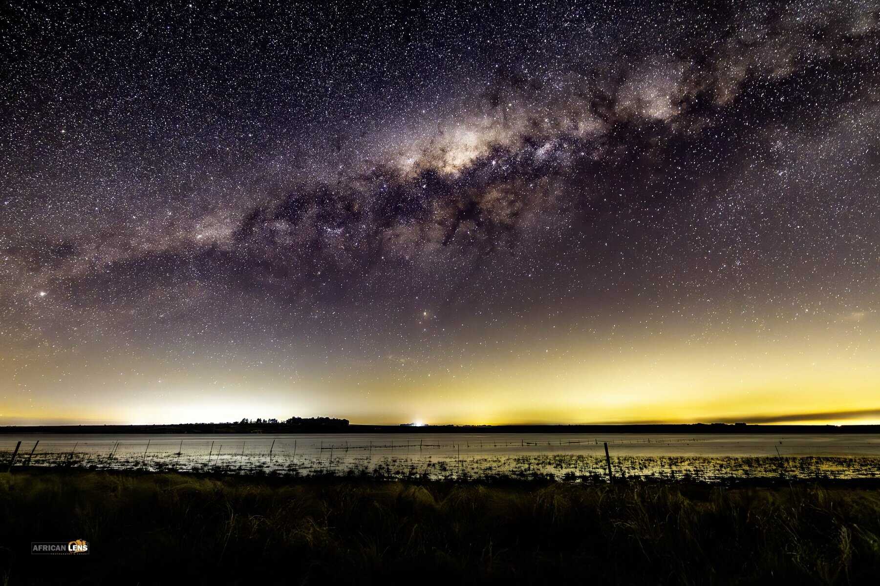 Chrissiesmeer milky way with the glow of town and mine lights in the back groud