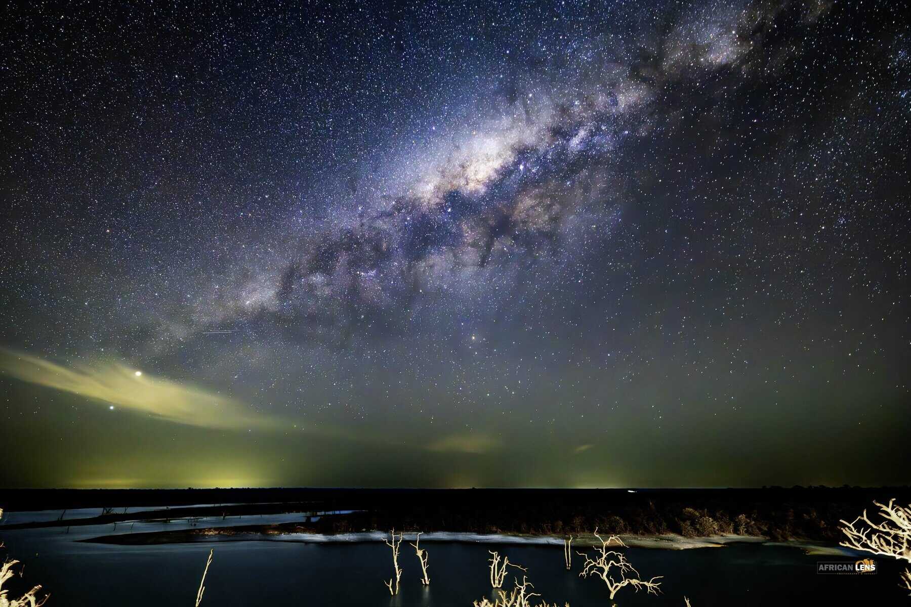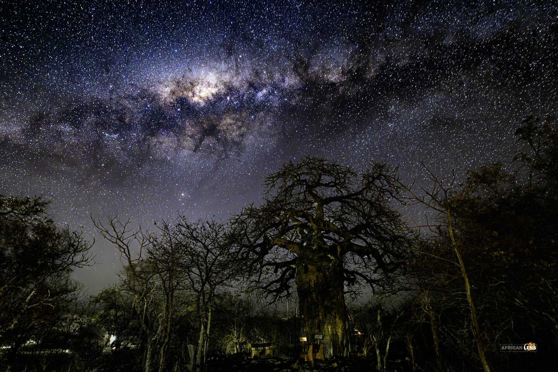 Baobab, milky way with cloud cover and border ost light reflection